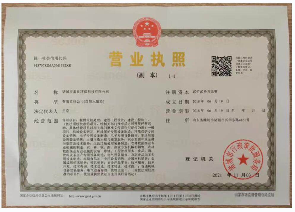 诸城市禹化环??萍加邢薰敬邮滦笄菸藓碜氨?、污水处理设备、畜禽粪污处理装备无害化处理设备等环保设备等专业研发制造,历经几年的发展,现已成为集技术研发、工艺设计、产品制造、安装培训为一体的现代化机械制造工业企业。公司坐落于沿海开放城市并有“中国龙城舜帝故里”之称的诸城市,东邻海滨名城青岛,南毗新兴港口城市日照,交通便利,地理位置优越。公司坚持以诚信谋发展的理念,以“精湛的工艺技术、精良的设备品质、精细的售后服务”,赢得了广大用户的认可和赞誉,产品销售遍布全国各地,并远销东南亚、东亚、南美洲、中东等国际市场。